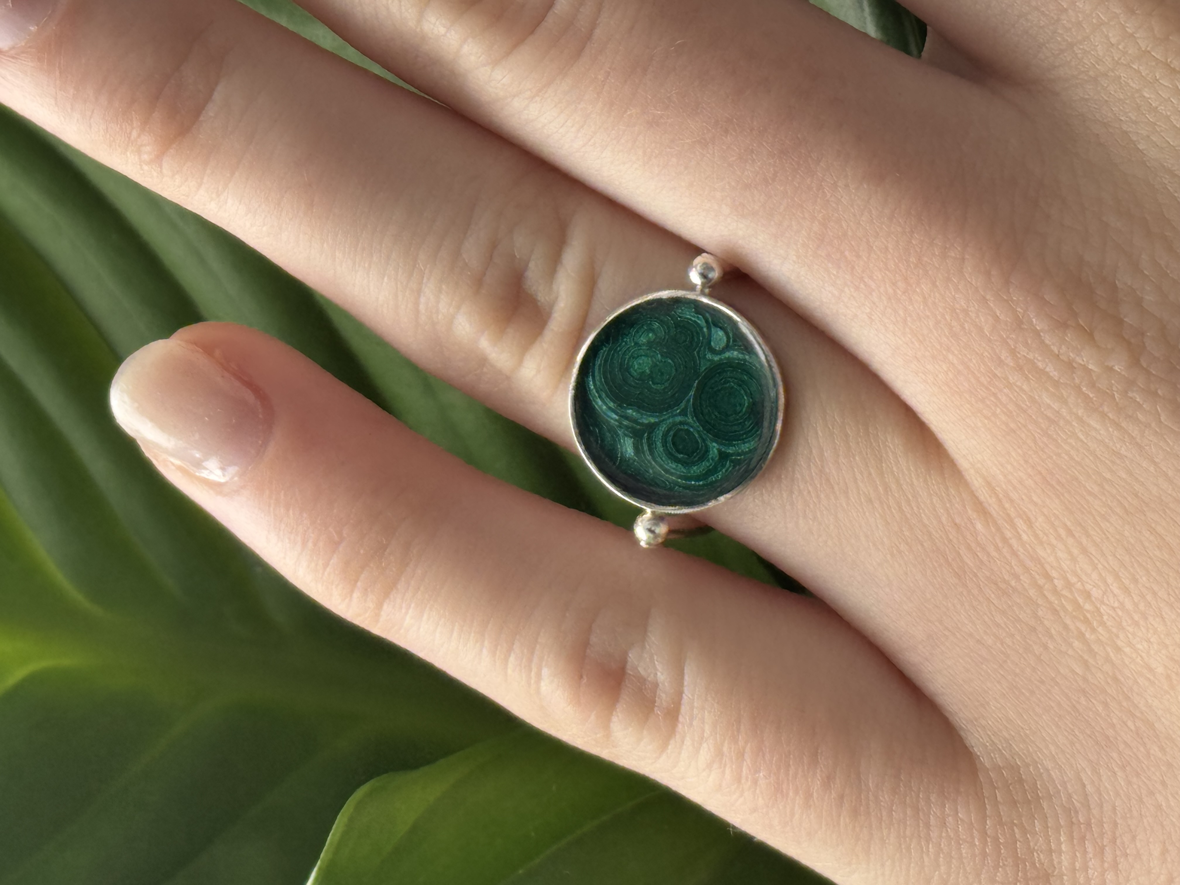 Кольцо Малахитовые истории с горячей эмалью